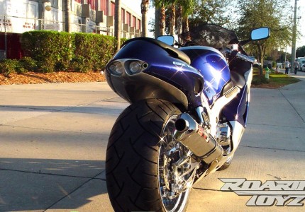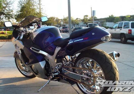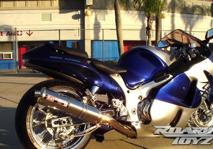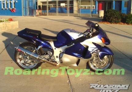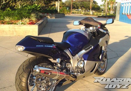 Blue Silver Hayabusa with Chrome Roaring Toyz Swingarm