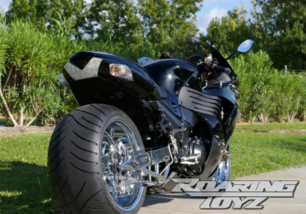 Custom Kawasaki ZX14 with Roaring Toyz 300 Wide Tire Swingarm Kit