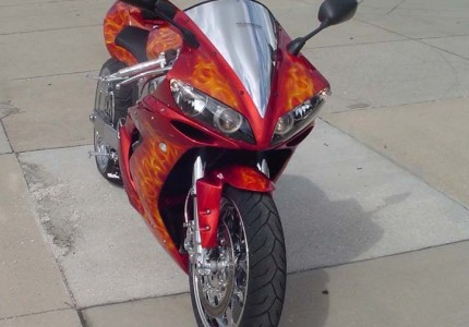 Custom Orange Blaze Yamaha R1 with Extended Swingarm and NOS