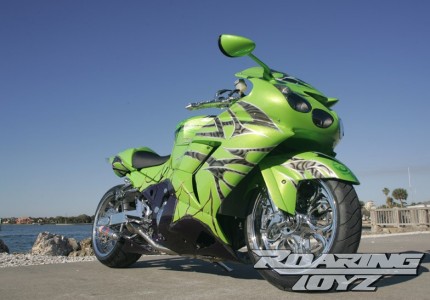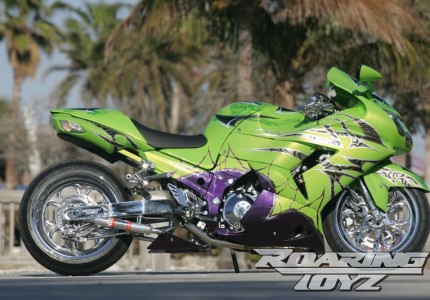 Green & Purple Roaring Toyz Custom Kawasaki ZX14 with NOS