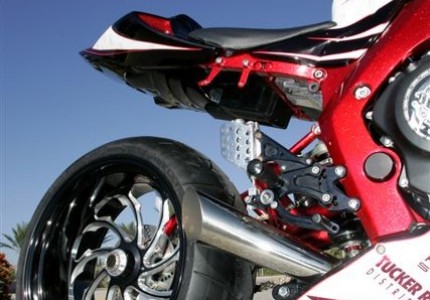 Gregg’s Customs 240 S.S.S. Swingarm – A very trick piece that includes rear drive assembly with custom rear rotor, billet rear caliper, billet caliper hanger and spindle. (G.C. supplied rear master cyl. assy to clean up rear brake assy.)