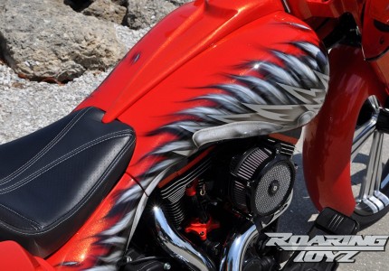 Fisher says The Chief is a perfect example of what Roaring Toyz brings to the custom V-twin industry. “When we build a custom motorcycle, we build them to ride. When we plan a motorcycle, the fit and function is crucial because it still has to be a good ride. We put on good quality components that can withstand long, aggressive riding.”